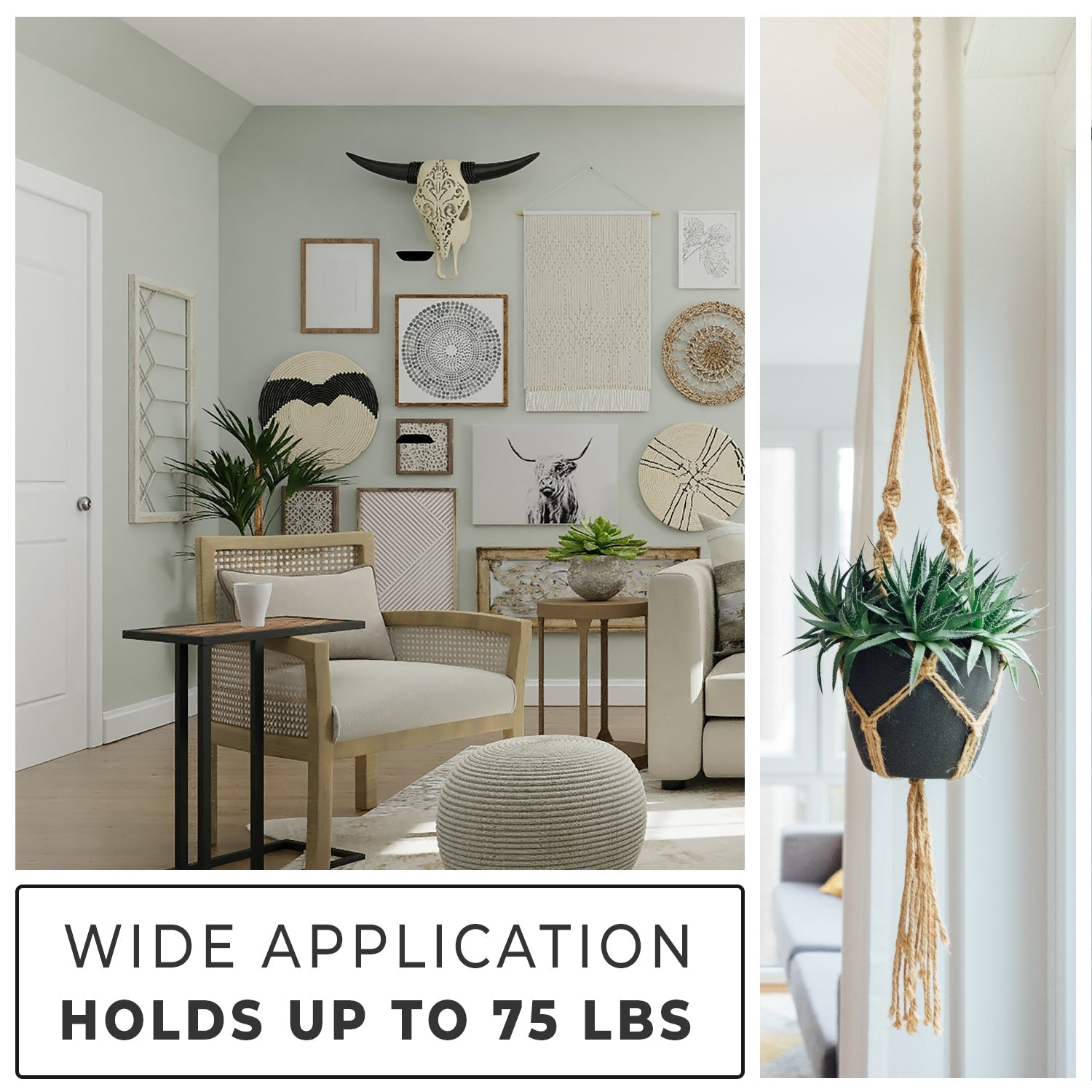 The #8 screws included are made from hardened carbon zinc-plated steel, ensuring maximum strength and durability holding up to 75 lbs. Ideal for hanging large mirrors, picture frames, wire shelves, electronic devices, bathroom fixtures, lighting fixtures, curtain rods, and much more to drywall, providing a reliable and long-lasting hold.