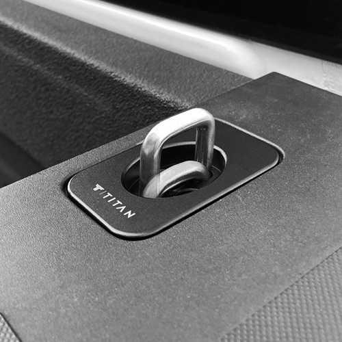 Our Titan Select™ 2015-2026 Ford F150 retractable anchors sit flush and securely inside the rails of your truck bed. The retractable D-ring snaps up when in use and retracts back down when it's not. Engineered and constructed from a combination of aircraft-grade aluminum, stainless steel, and high-strength polymer to provide over 1,000 lbs. of tie down capacity.