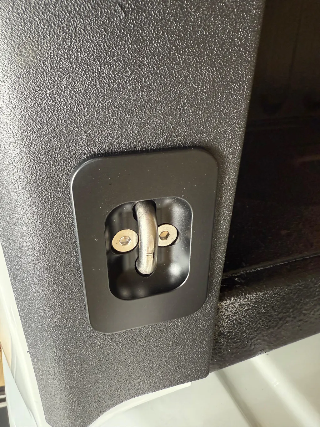 What if found with the tie downs and the plastic covers is that the plastic will bow down when you get the right torque in the screws to be secure. To solve this, I cut 2 small rectangles of 1/8 aluminum to slide between the bed metal and the plastic before installing the tie downs (I put a little 3m spray adhesive on the aluminum to help with slippage). This let me tighten the screws well enough for the tie downs to be secure and not cause any bowing of the plastic.